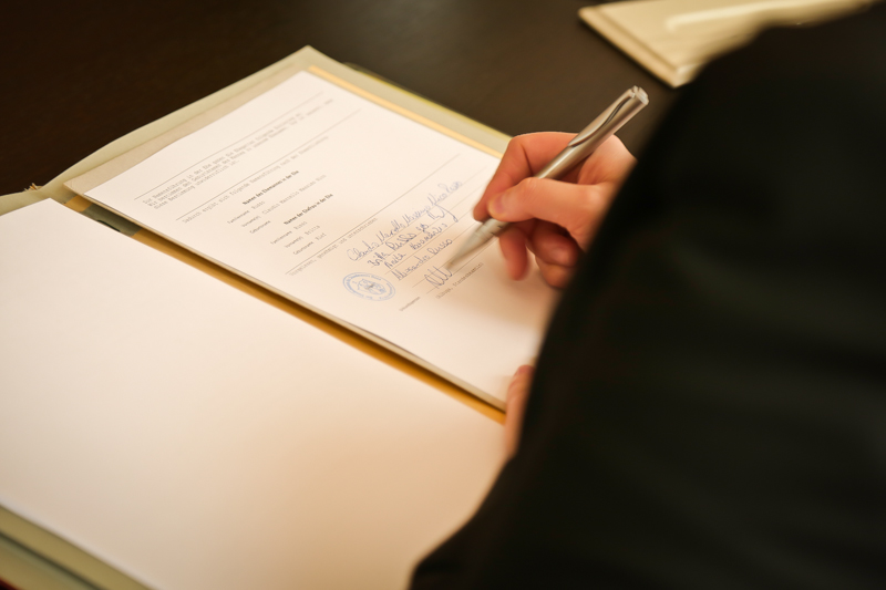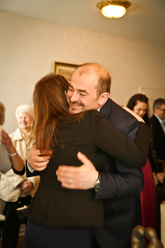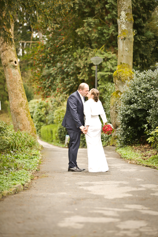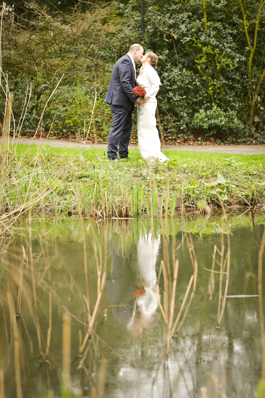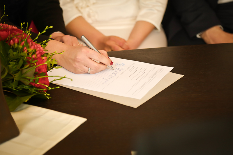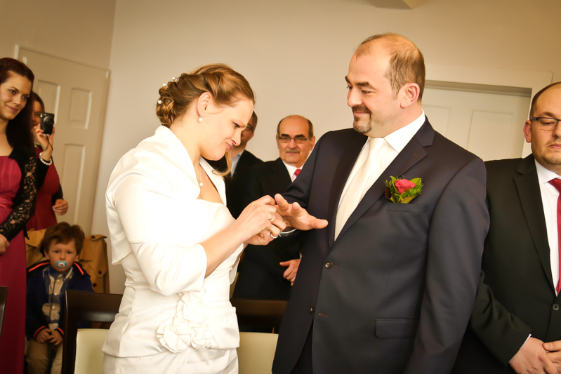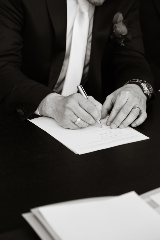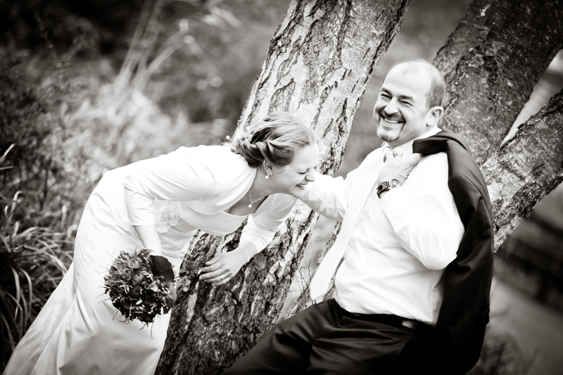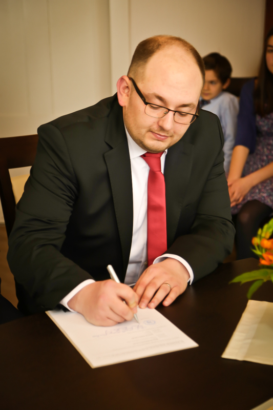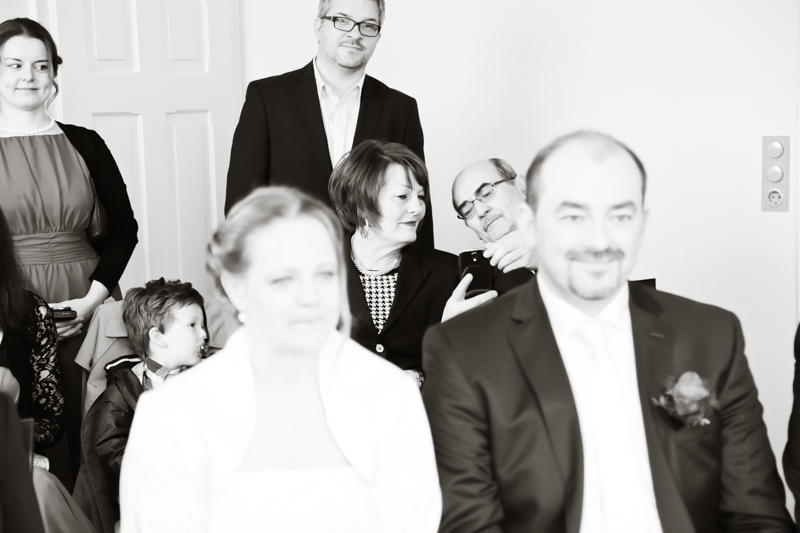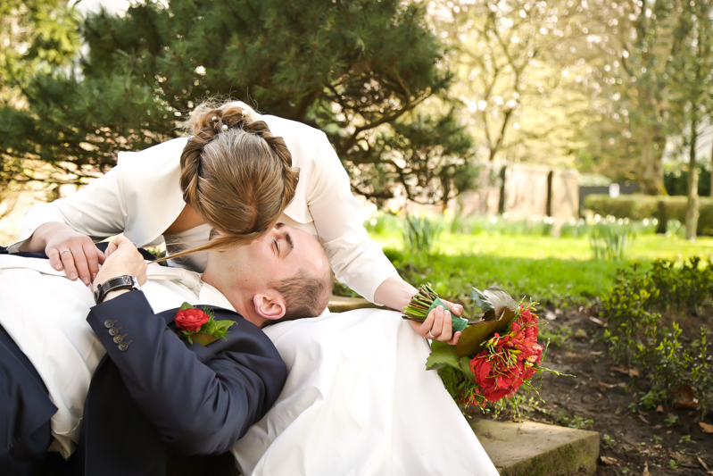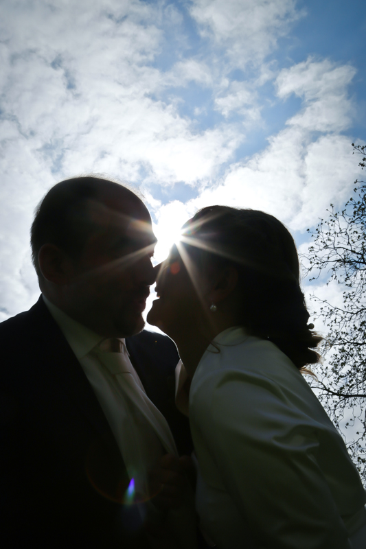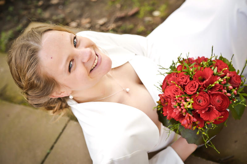 Während der Trauung waren beide sehr bewegt und so rollten die ersten Tränken über die Wangen. Ein deutliches Ja auf beiden Seiten sorgte für einen innigen Moment. Nach geleisteter Unterschrift, war das Glück besiegelt. Nach den Gratulationen durch die Familien folgten die Bilder fürs Familienalbum. Danach ging es weiter zum Sektempfang in ein nahegelegnes Café. Während die Gäste dort kurz verschnaufen konnten, ging es für uns zum Brautpaarshooting in einen nahegelegnen Park. Hier flapsten die beiden mächtig rum und es gab viele Momente, wo wir vor lauter Lachen kaum noch Fotos machen konnten. So entstanden eine ganze Menge sehr natürlicher und ausgelassener Brautpaarbilder. Schon nach kurzer Zeit beendeten wir die Session und fuhren zur Location, in der die Feier geplant war. Auch hier nutzten wir noch einmal die Gelegenheit ein paar intime Fotos der beiden zu schießen.
