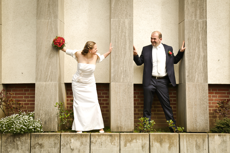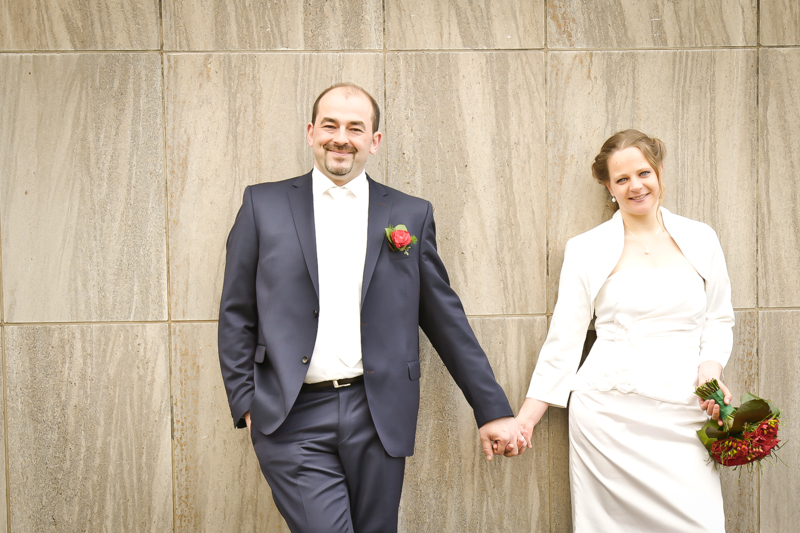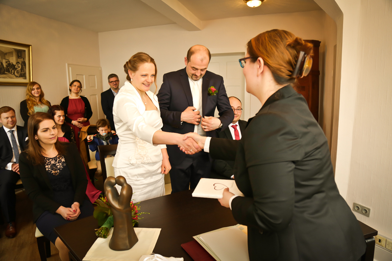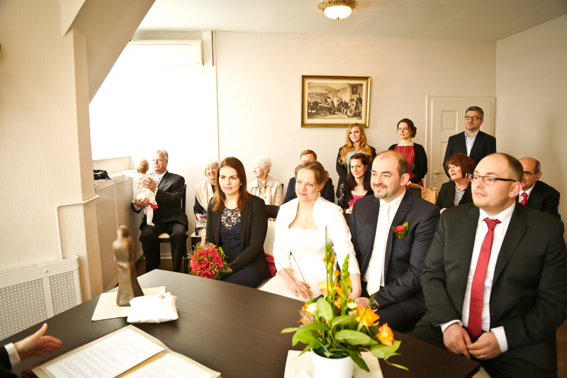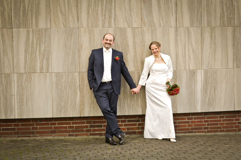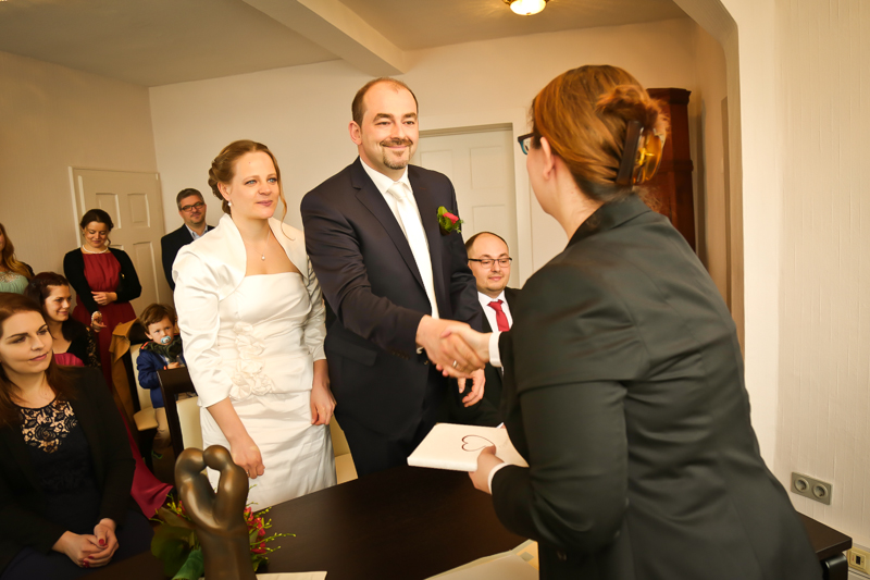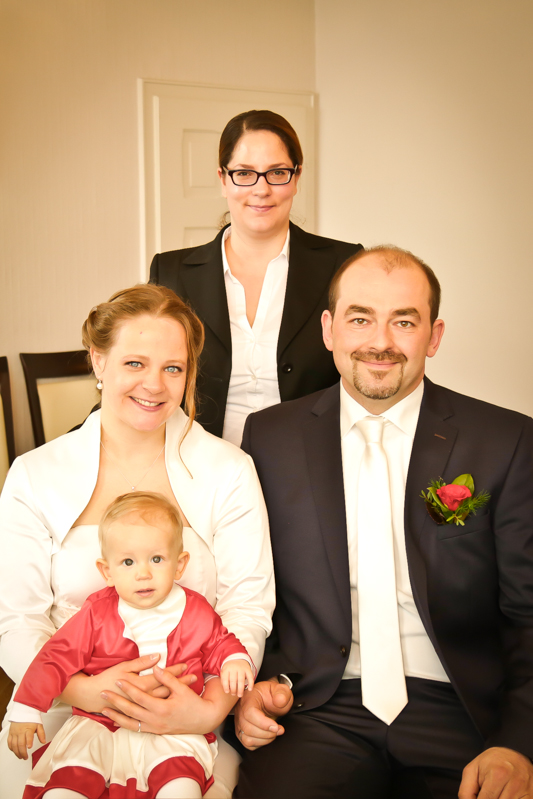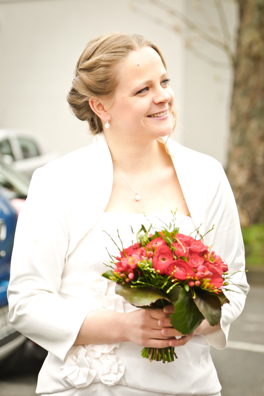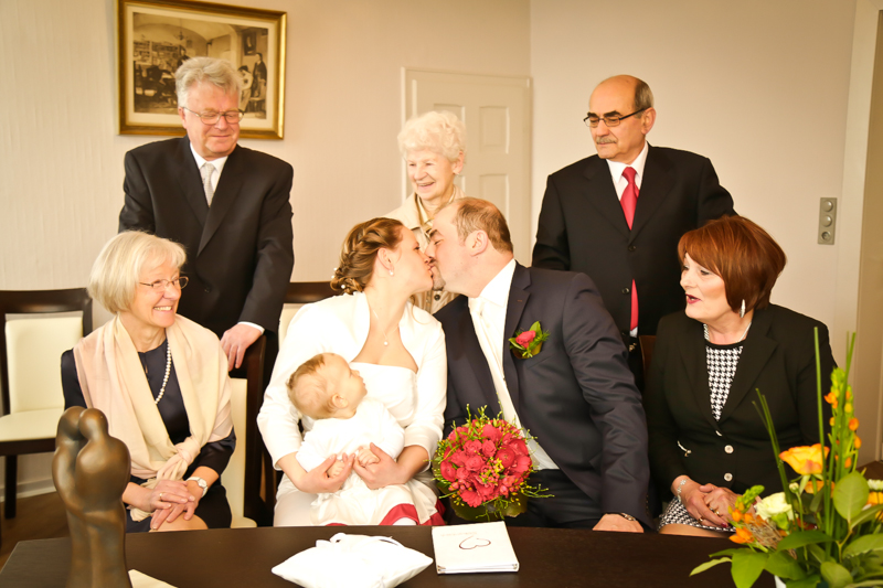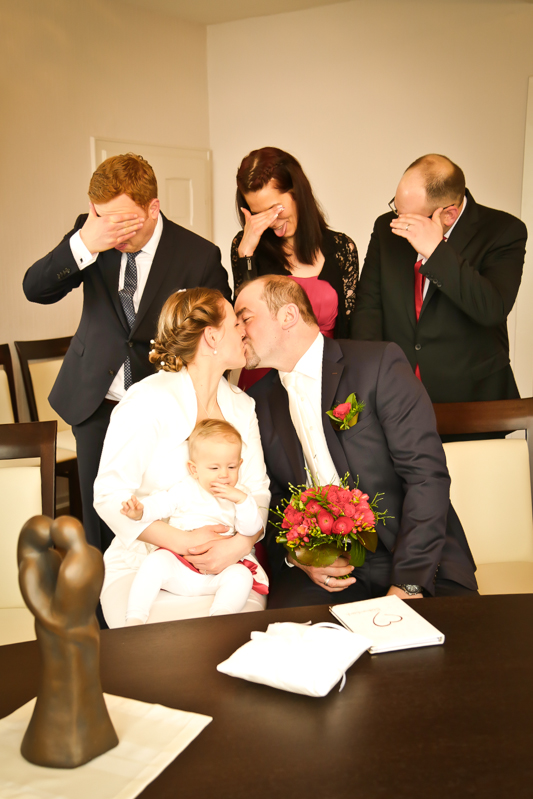 Es gibt Hochzeiten auf die freut man sich ein bisschen mehr. Genau so eine Hochzeit durfte ich im April als Fotografin begleiten. Britta & Claudio lernte ich durch ein ehemaliges Brautpaar von mir kennen. Der Bruder und die Schwägerin von Claudio gaben sich im letzten Jahr das Ja-Wort (Liebe Mandy, lieber Alessandro – an dieser Stelle alles Liebe zu eurem ersten Hochzeitstag!!!) und auch hier durfte ich Bilder zaubern. Schon damals fühlte ich mich innerhalb der Familien pudelwohl und wurde mit ganz viel Herz und Humor empfangen. So erging es mir auch diesmal. Bei zwar kaltem, aber dennoch sonnigen Wetter erwartete ich die beiden und ihre kleine zuckersüße Tochter vor dem Standesamt der Stadt Haan. Beiden war die Nervosität anzusehen, aber der Humor der beiden überstrahlte alles.