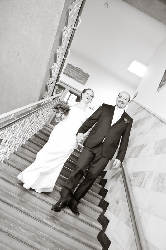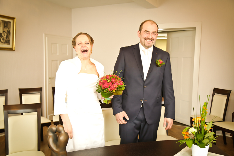Beim Einzug ins Standesamt, flapsten wir noch rum – für mich als Hochzeitsfotografin immer ein schöner Moment, wenn das Brautpaar gelöst und voller Vorfreude ist.