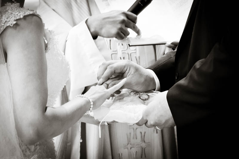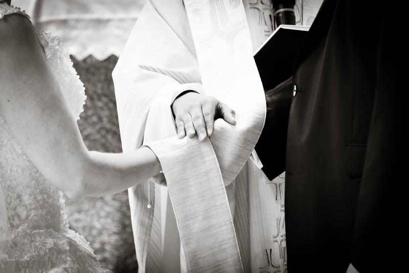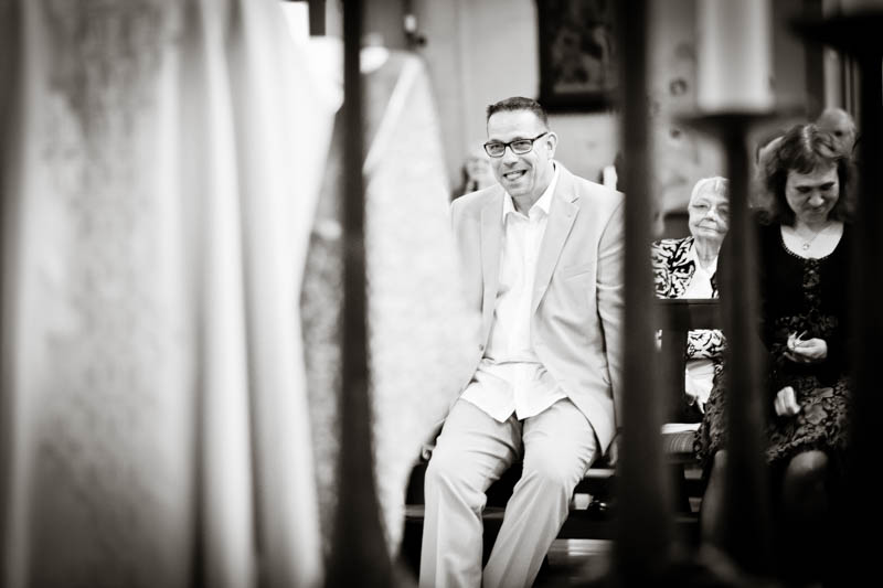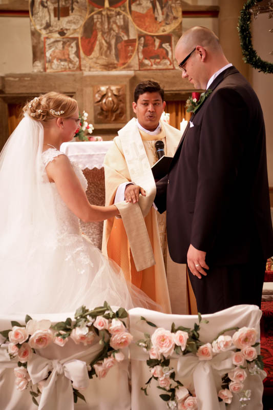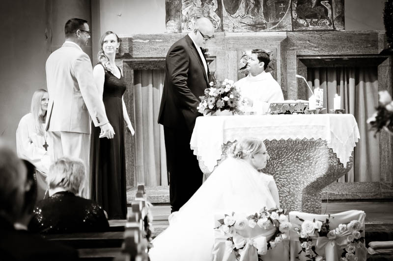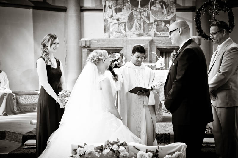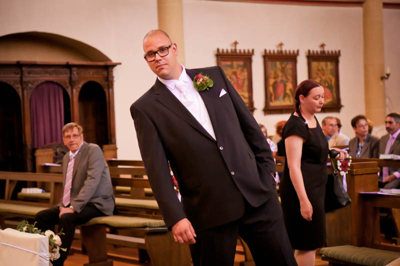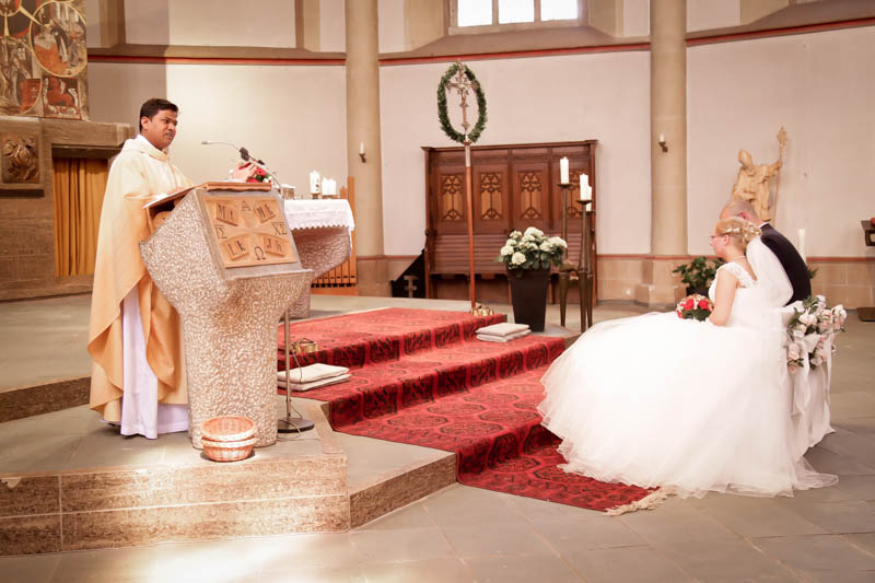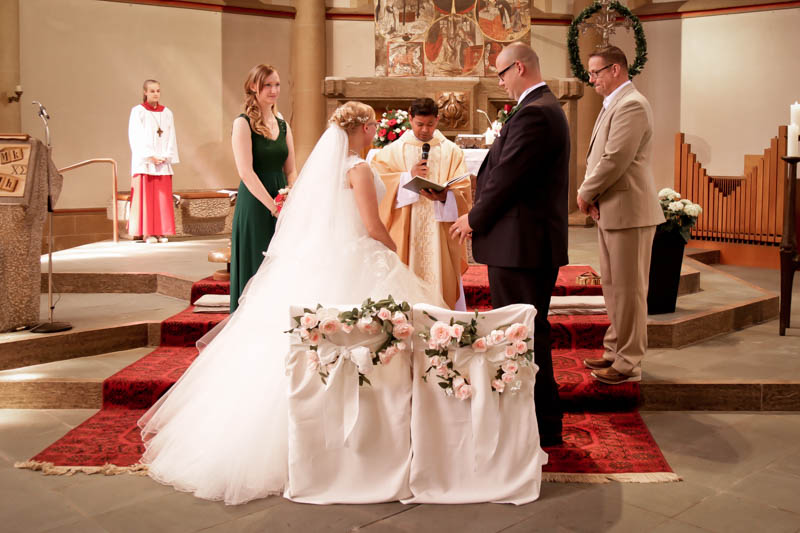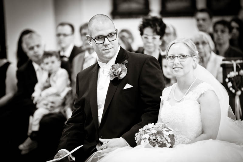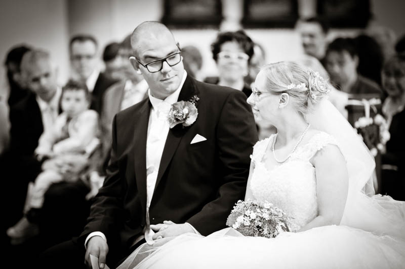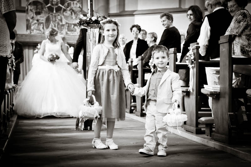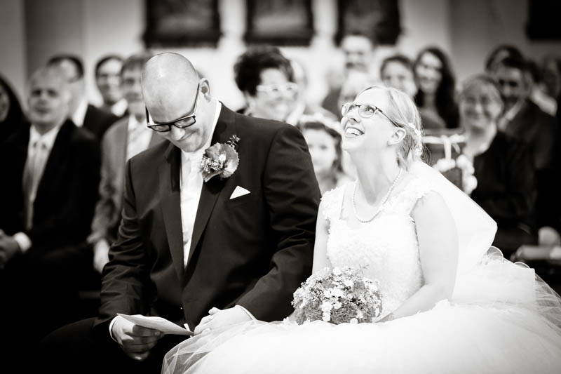 Beim Lesen dieses Gedichtes musste ich an eines meiner Brautpaare denken, welches ich euch heute vorstellen möchte: Frauke und Lars. Wir begegneten uns auf der Hochzeitsmesse in Duisburg Rheinhausen und nach einem persönlichen Kennenlernen in meinem kleinen Fotostudio war klar, dass ich die beiden an ihrem grossen Tag im Mai als Fotografin begleiten werde. Schon in unserem Kennenlerngespräch haben die beiden mich fasziniert. Wirkten sie erst einmal unterschiedlicher wie kaum möglich, entdecke ich recht schnell, wie gut die beiden sich ergänzen und das sie gemeinsam perfekt harmonieren. Sie entschieden sich für eine Halbtagsreportage ihrer Hochzeit und so starteten wir vor Beginn der Trauung. Treffpunkt war die St. Nikolauskirche in Rheinberg Orsoy. Das Wetter meinte es besonders gut mit uns und so konnten wir – bei wunderbar warmen Temperaturen – die strahlende Sonne geniessen. Die eintreffenden Gäste fanden sich schnell in der schmucken Kirche ein und der „etwas“ nervöse Bräutigam wartete tapfer auf seine Braut. Diese kam pünktlich zu Traubeginn an Papas Arm zur Kirche gelaufen und strahlte mit der Sonne um die Wette. Der zuständige Pastor hielt eine wunderbare und sehr humorvolle Predigt, die alle Anwesenden immer wieder zu Tränen rührte. Die Stimmung war einfach wunderbar herzlich und so verging die Zeit mit den vielen kleinen Anekdoten wie im Flug.