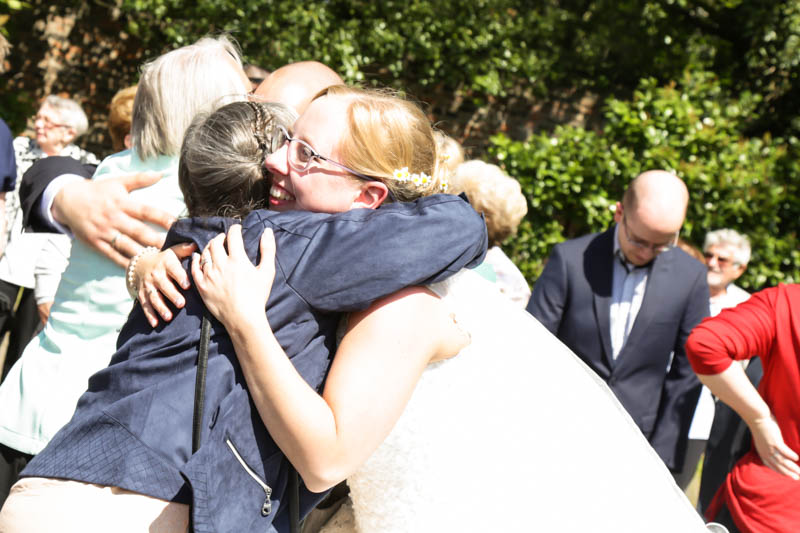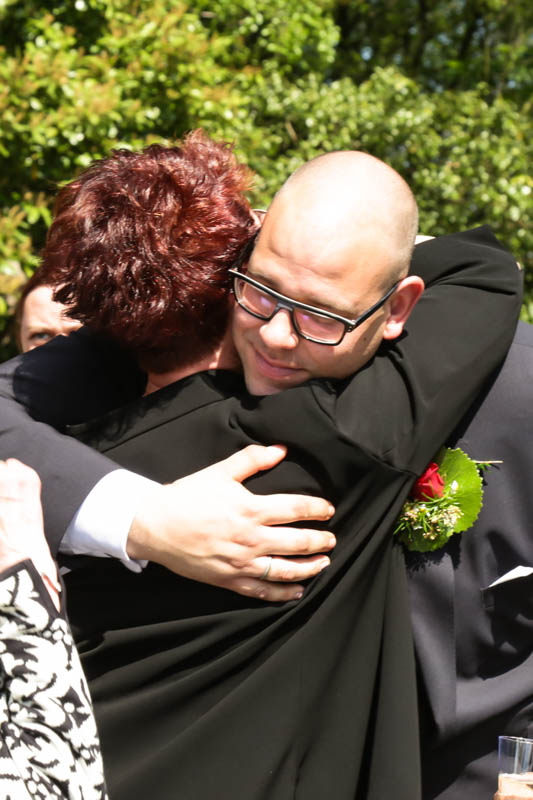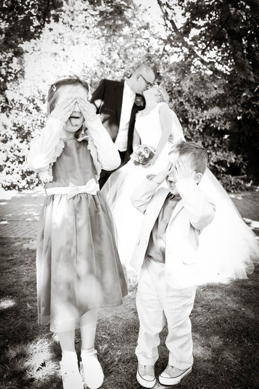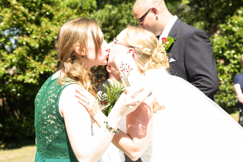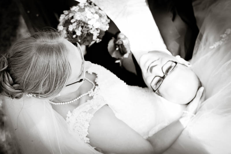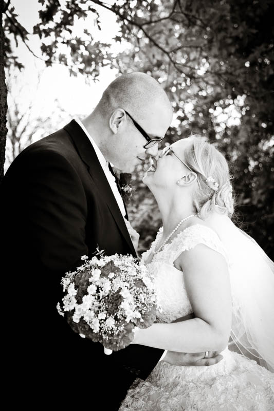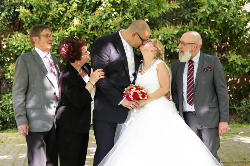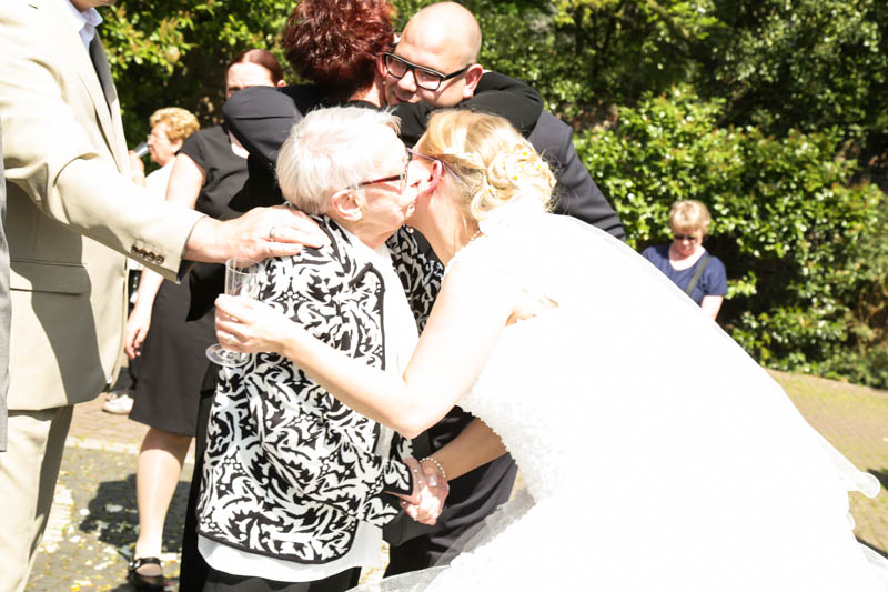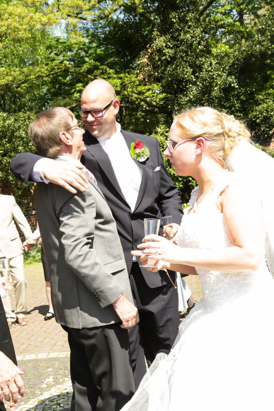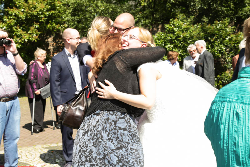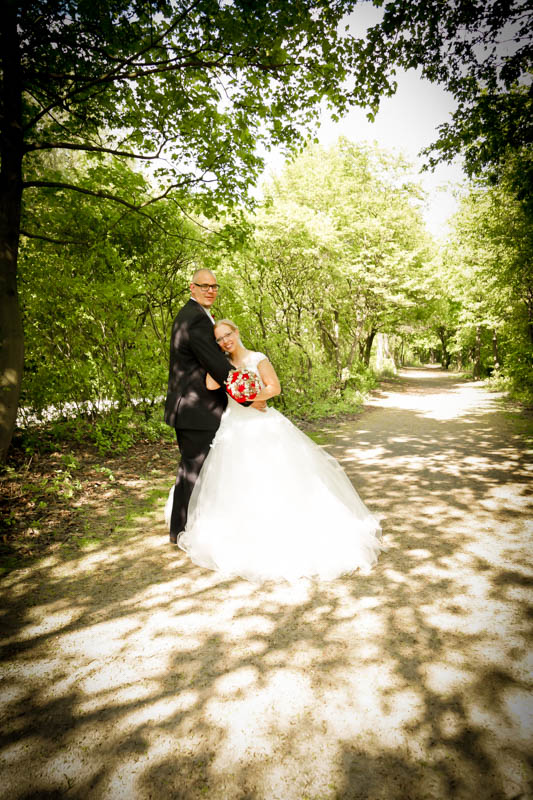 Im Anschluss an die Trauung wurde kräftig gratuliert, geherzt und gelacht – es flogen Küsschen und Umarmungen. Auf der Wiese vor der Kirche war genug Platz für die Familienfotos. Von da aus begleitete ich das Brautpaar zu seiner persönlichen Auszeit; dem Brautpaarshooting. Als Location war eigentlich der Rheinpark in Duisburg Hochfeld geplant, jedoch konnte aufgrund einer Sperrung der Rheinbrücke nicht garantiert werden, dass die beiden rechtzeitig zum Sektempfang in ihrer Location ankommen würden. Daher entschieden wir uns zum Toeppersee nach Duisburg Rumeln-Kaldenhausen zu fahren. Hier konnten die beiden fernab des Trubels ihre Zweisamkeit und das neu gewonnene Gefühl von verheiratet sein geniessen. Im Anschluss fuhren wir zum Hotel Schwarzer Adler in Moers, wo die Gäste bereits mit Sekt bewaffnet auf Frauke und Lars warteten. Ich danke euch beiden für euer Vertrauen und freue mich, dass ich als eure Hochzeitsfotografin dabei sein durfte. Es war toll euch wieder zu sehen und noch mehr freut mich, dass euch das Ergebnis gefällt. Ich wünsche euch eine wunderbare gemeinsame Zukunft.